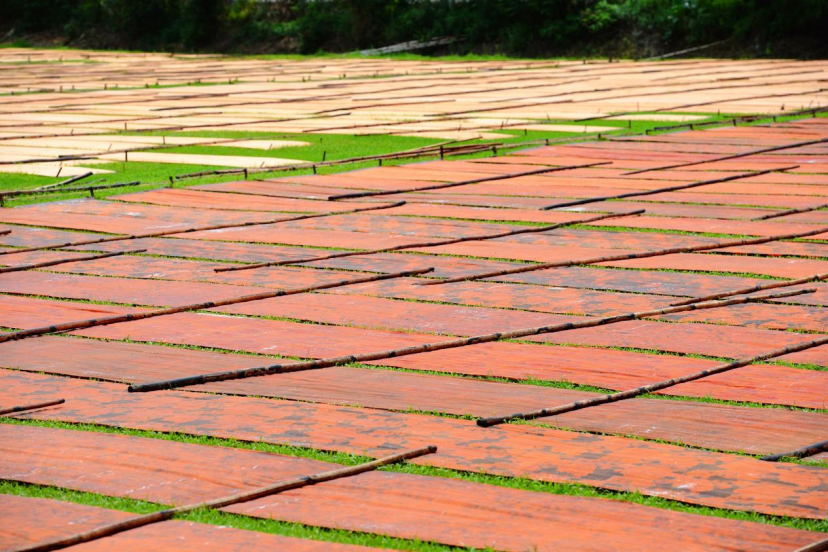 香云纱被誉为“软黄金”,其复杂技巧不错用“三蒸九煮十八晒”来详细,条目坐褥地必须配备薯莨、河泥、草地、阳光这四大身分。榄核镇是红色热土,亦然非遗沃土,是我国四大香云纱坐褥基地之一。早在2015年,榄核镇香云纱染整技巧入选第五批广州市级非物资文化遗产代表性形貌名录。